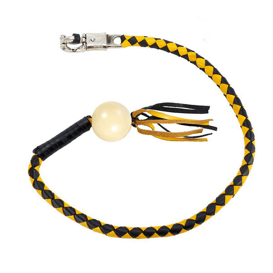 Black And Yellow Fringed Get Back Whip With White Pool Ball