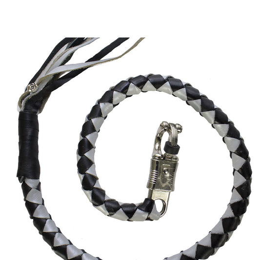 Black And Silver Hand-Braided Leather Get back Whips - 2" Thick/42" Length