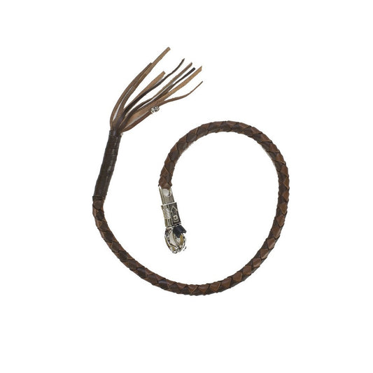 MOTORCYCLE 39" BLK BRAIDED BIKER OLD SCHOOL REAL LEATHER WHIP GREAT QUALITY