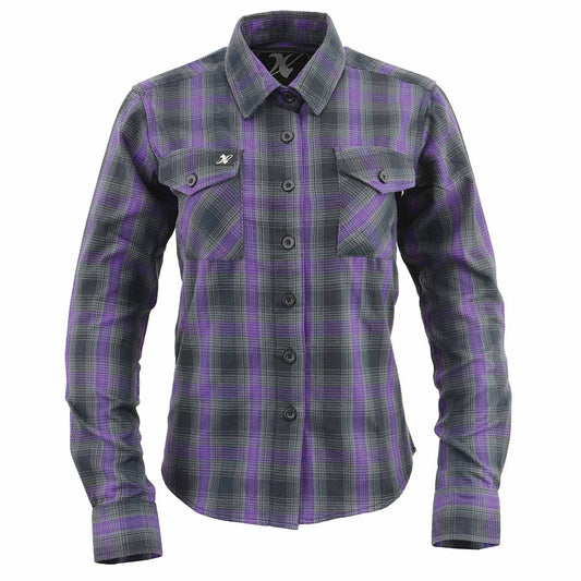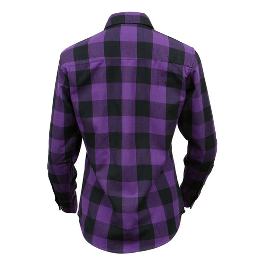 Women's Casual Black with Purple Long Sleeve Casual Cotton Flannel Shirt