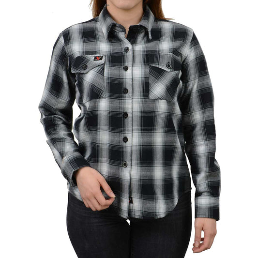 Women's Black and White Long Sleeve Cotton Flannel Shirt