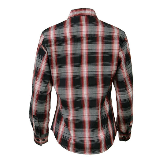 Women's Black and Red with White Long Sleeve Cotton Flannel Shirt