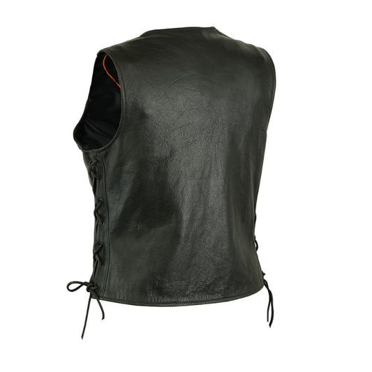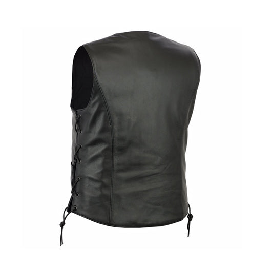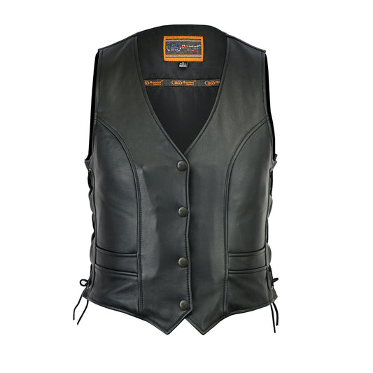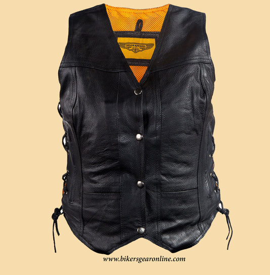 WOMEN'S 10 POCKET BLACK LEATHER VEST SIDE LACES