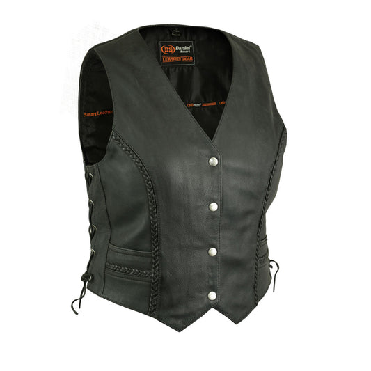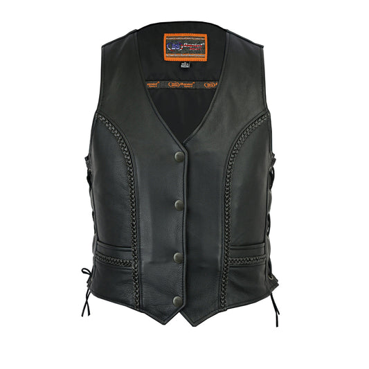 VANCE LEATHER LADIES LAMBSKIN VEST WITH VERTICAL BRAID