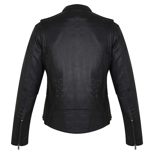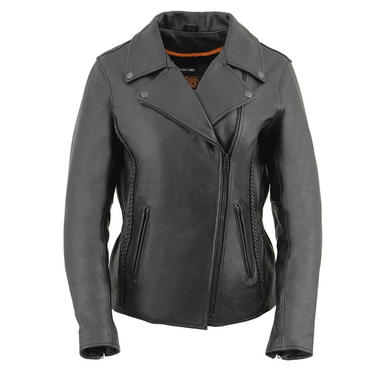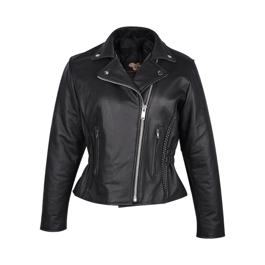 Ladies Premium Cowhide Braid and Stud Motorcycle Leather Jacket