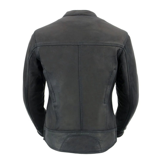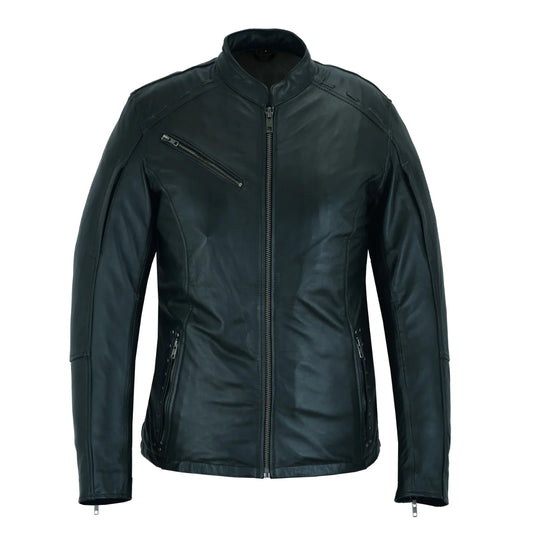 Ladies Black Sporty Scooter Crossover Leather Jacket