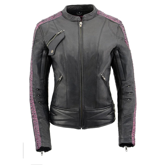 Ladies Purple Winged ‘Scuba’ Leather Jacket with Hoodie
