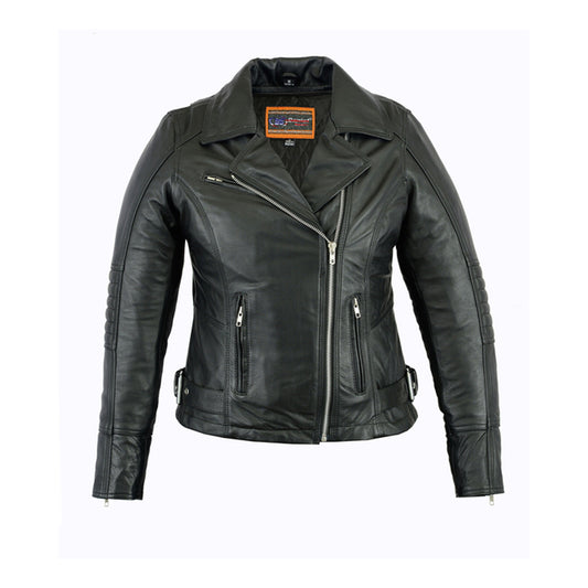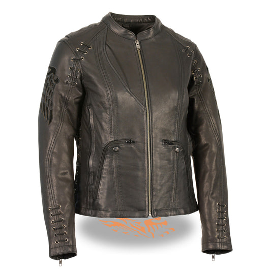 Milwaukee Leather Women's Jacket with Ribbon Detail (Black/ Black)