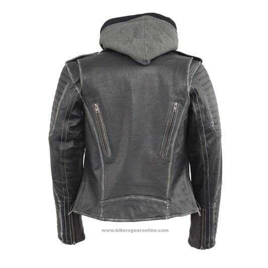 Milwaukee Leather Ladies Rub-off M/C Jacket with Full Hoodie Jacket Liner