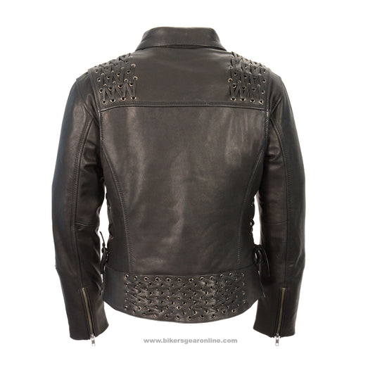 LADIES LIGHTWEIGHT MOTORCYCLE JACKET LACE TO LACE M/C JACKET