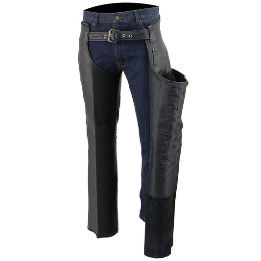 Men's Black Leather Chaps with Slash Pocket and Thermal Liner