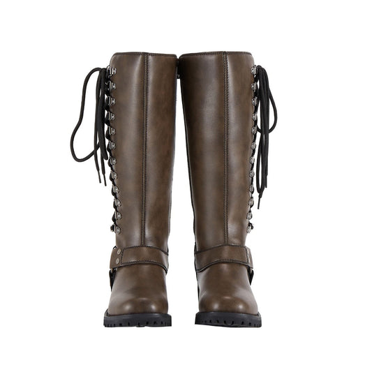 Women Long Biker Boots Brown