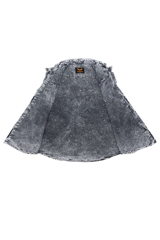 Men’s Grey and Black Cut Off Denim Button Down Shirt