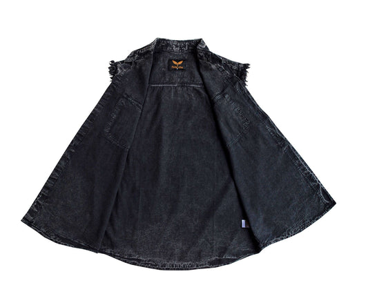 Mens Biker Cuttoff Cotton Shirt Stonewash Black