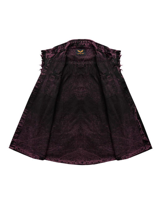 Mens Biker Cuttoff Cotton Shirt Stonewash Burgundy