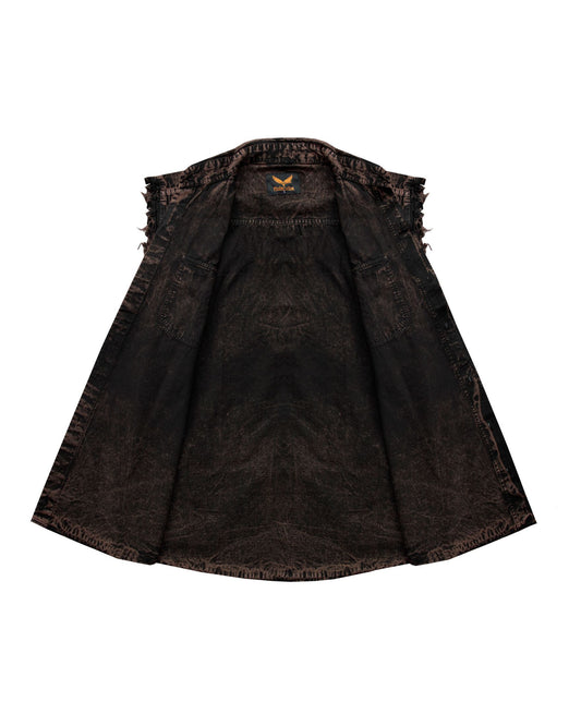 Mens Biker Cuttoff Cotton Shirt Stonewash Chocolate Brown