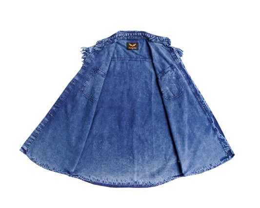 Mens Biker Cuttoff Cotton Shirt Stonewash Ocean Blue