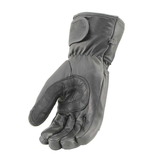 Men's Black Leather Gauntlet Motorcycle Hand Gloves W/ ‘Wrist Strap Closure and Lightly Lined’