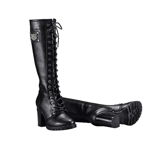 Ladies Black 6-Eye Motorcycle Boots W/ Zipper