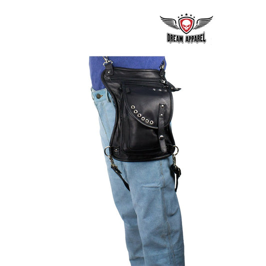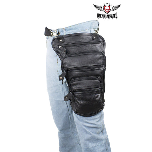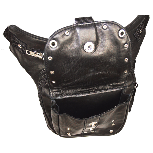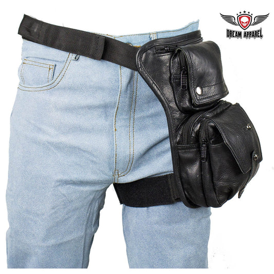 Premier Black Leather Multi Pocket Thigh Bags