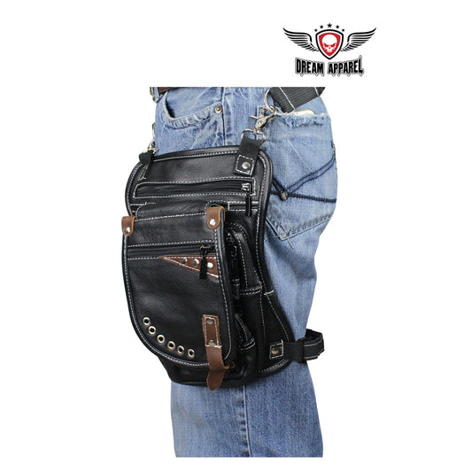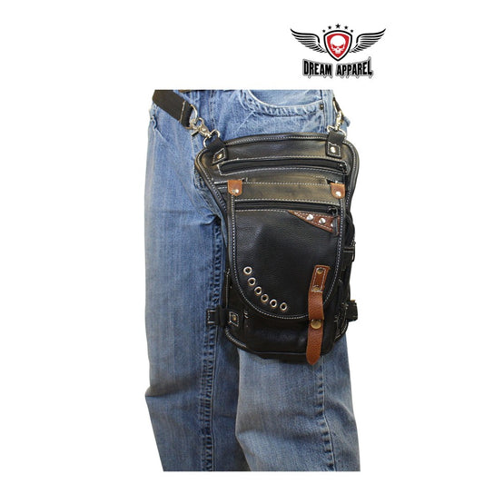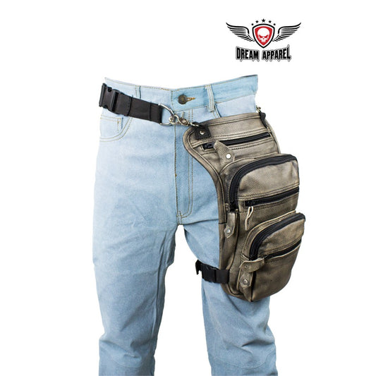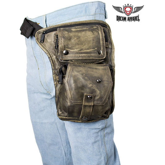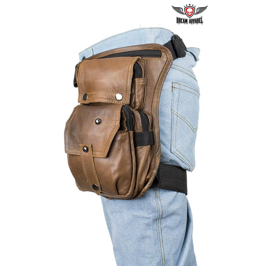 Distressed Brown Leather Multi Pocket Thigh Bags with Gun Pocket