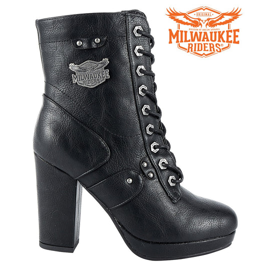 Womens Leather Zippered Chunky Heel Boots By Milwaukee Riders®