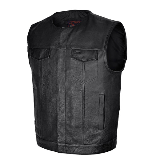 MEN'S ZIPPER AND SNAP CLOSURE LEATHER MOTORCYCLE CLUB VEST QUICK ACCESS GUN POCKET