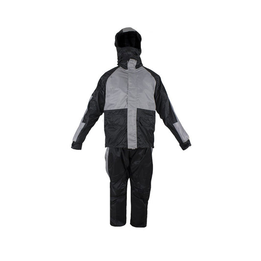 Two-Piece Black & Gray Rain Suit With Zippered Side Seams