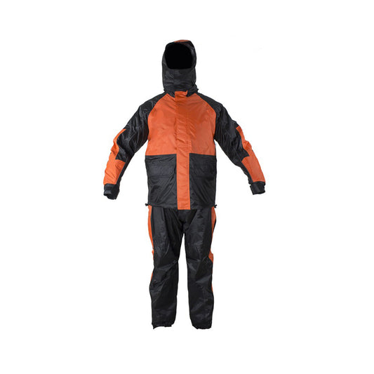 Two-Piece Black & Orange Rain Suit With Zippered Side Seams