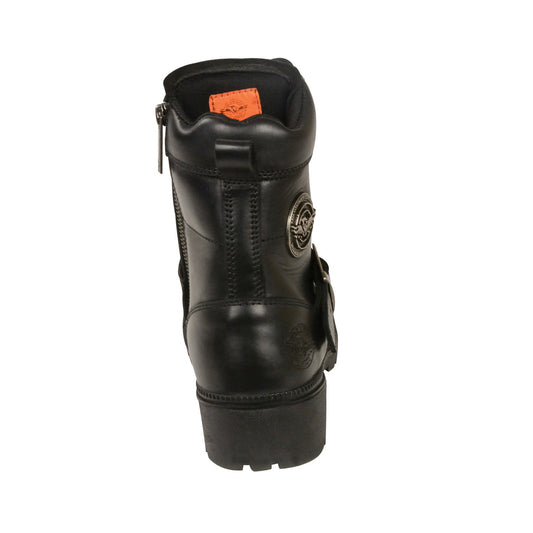 LADIES MOTORCYCLE SIDE BUCKLE PLAIN TOE BOOT
