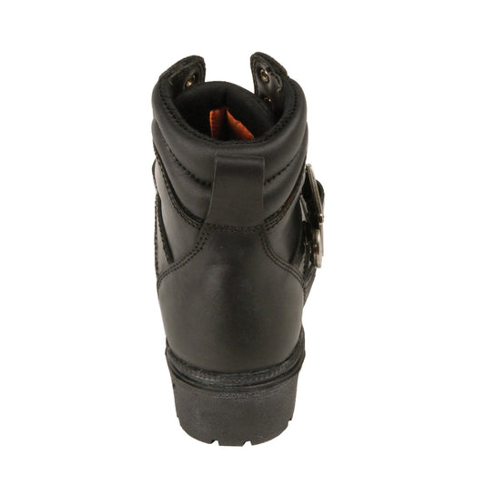 LADIES MOTORCYCLE LACE TO TOE SIDE BUCKLE LEATHER BOOT W/ PLAIN TOE