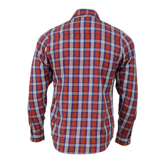 Men's Red and Blue with White Long Sleeve Cotton Flannel Shirt