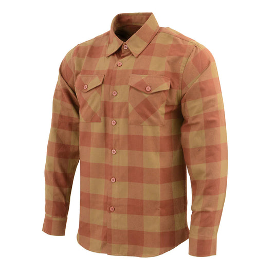 Men's Brown and Beige Long Sleeve Cotton Flannel Shirt