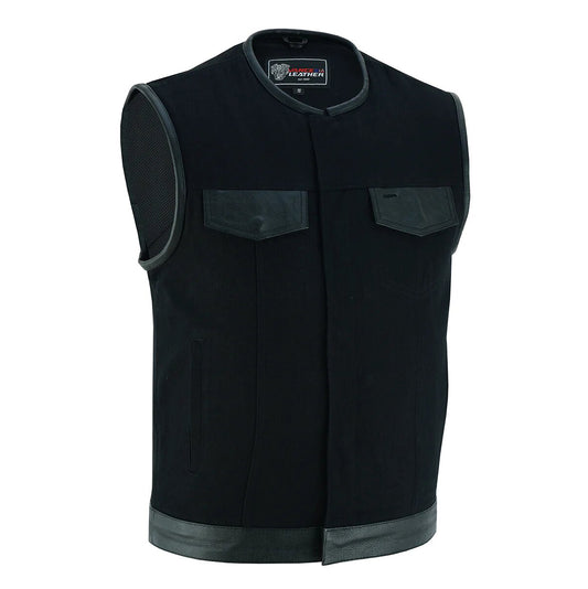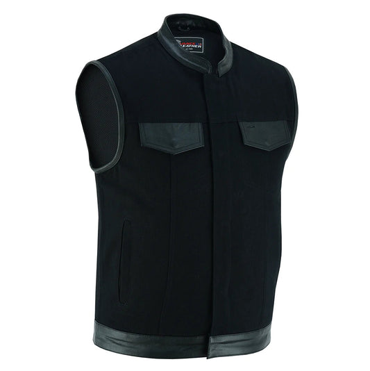 MEN’S PERFORATED LEATHER/DENIM COMBO VEST (BLACK/ ASH GRAY)