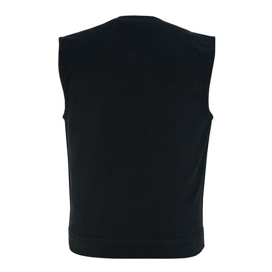 Mens SOA Style Motorcycle Club Vest® Black Denim Conceal Gun Pockets Side Laces Red Thread Red Liner