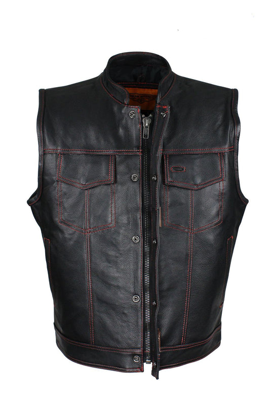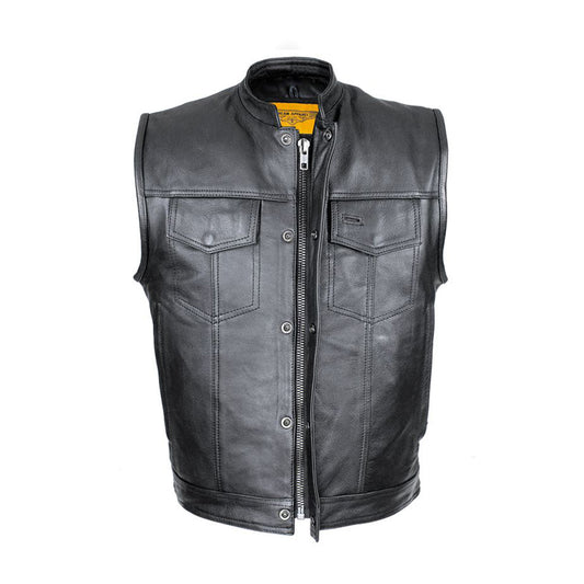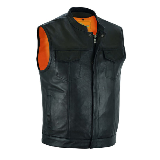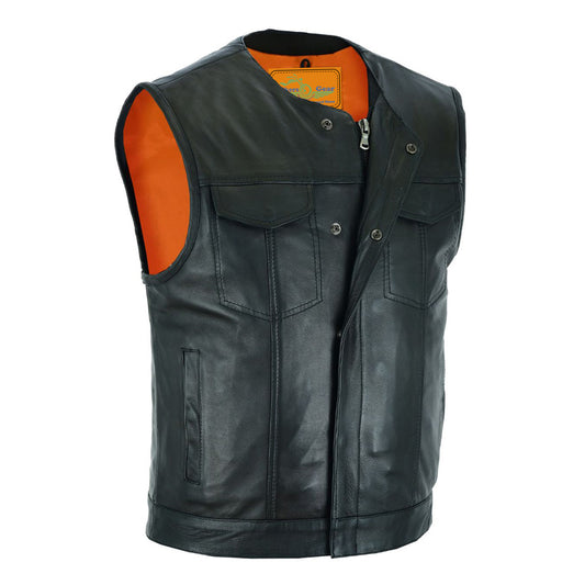 Dream Apparel Mens Motorcycle Collarless CLUB VEST with Black Liner & Zipper Front Closure