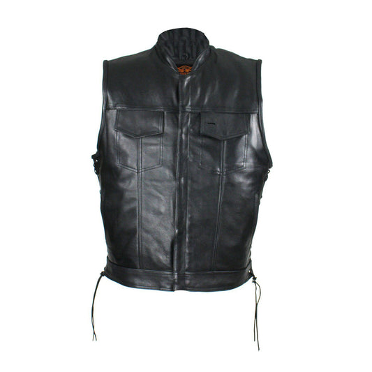 Men's Leather Gun Pocket Vest with Side Laces By Milwaukee Riders