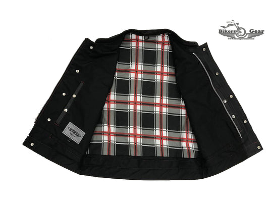 MEN'S CLUB LEATHER VEST WITH BLACK / RED FLANNEL LINER