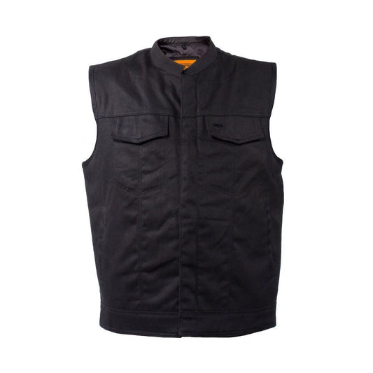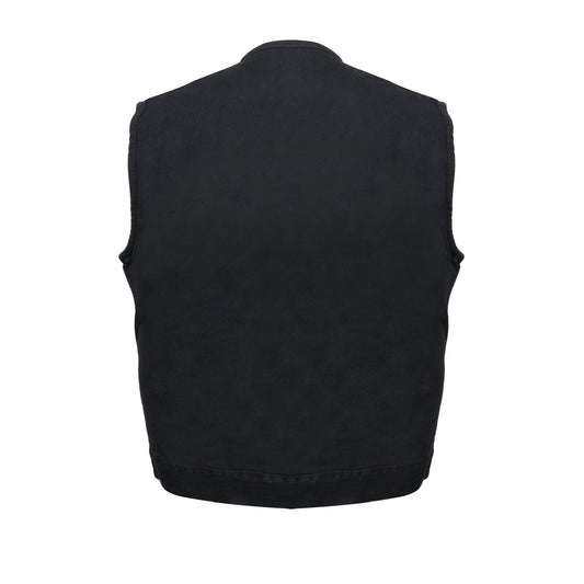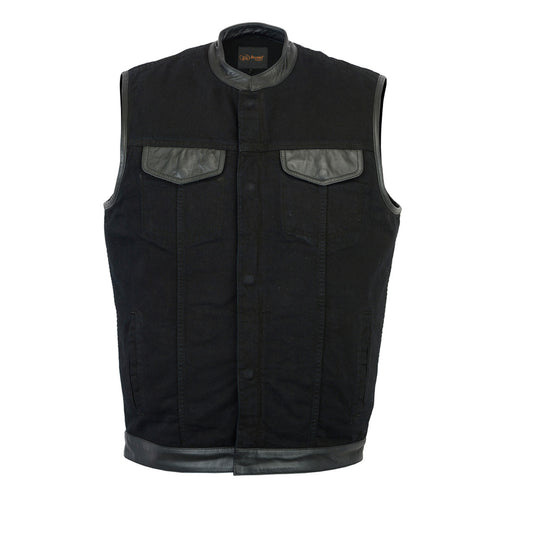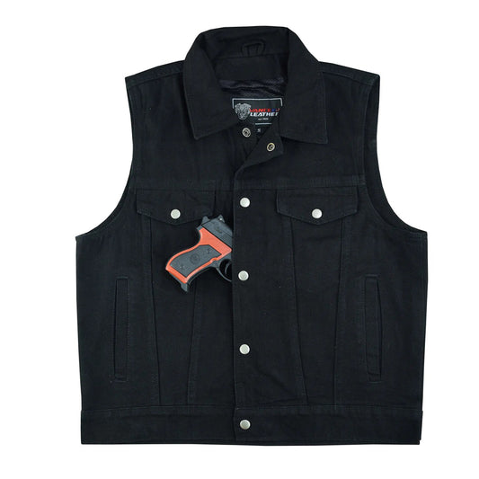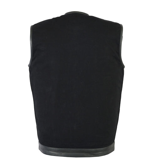 Men's Black Denim Single Panel Concealment Vest W/Leather Trim- w/o Collar