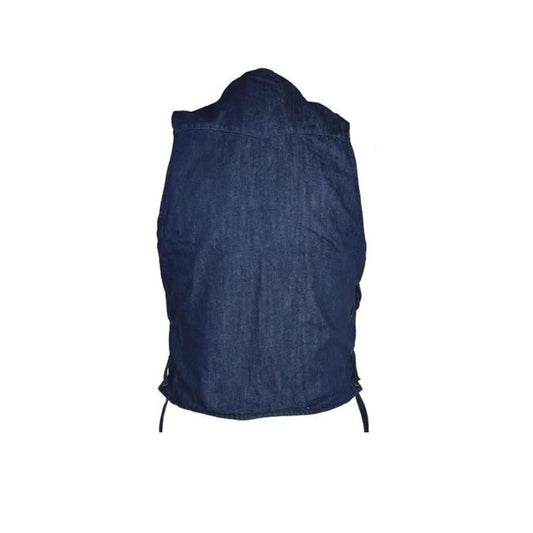 MEN’S 10 POCKET BLUE DENIM MOTORCYCLE VEST WITH 2 GUN POCKETS & SIDE LACES