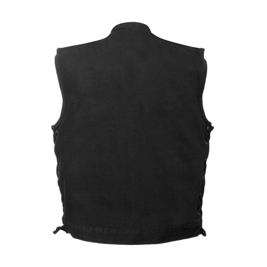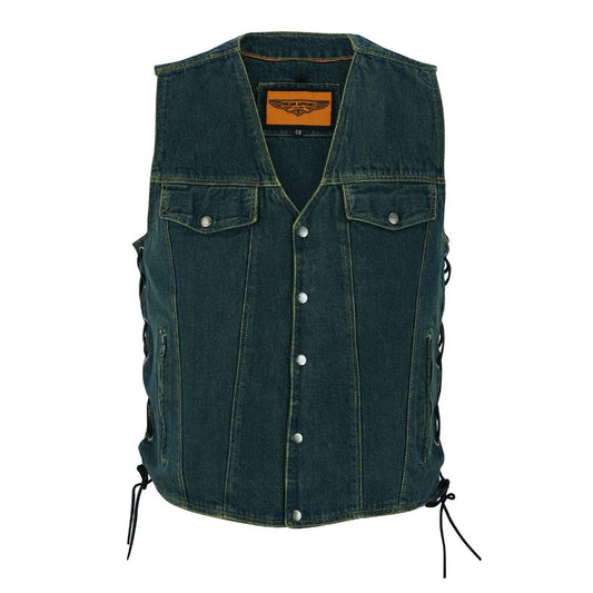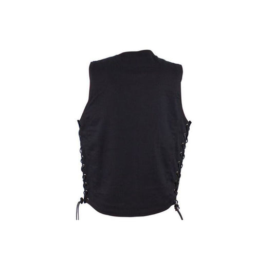 MEN’S MOTORCYCLE RIDING LIGHT WEIGHT BLK DENIM VEST WITH SIDE LACES & ZIPPER