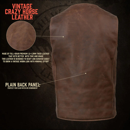 Men's 'Rustler' Vintage Crazy Horse Brown Leather Club Style Motorcycle Vest