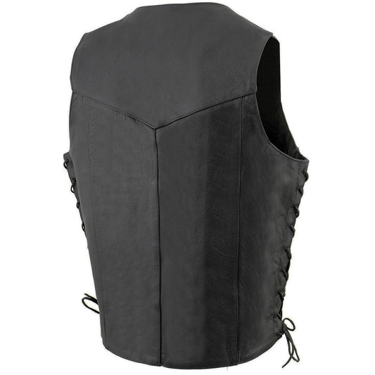 Men's Tall Sizes Black Leather Classic Side Lace Biker Vest