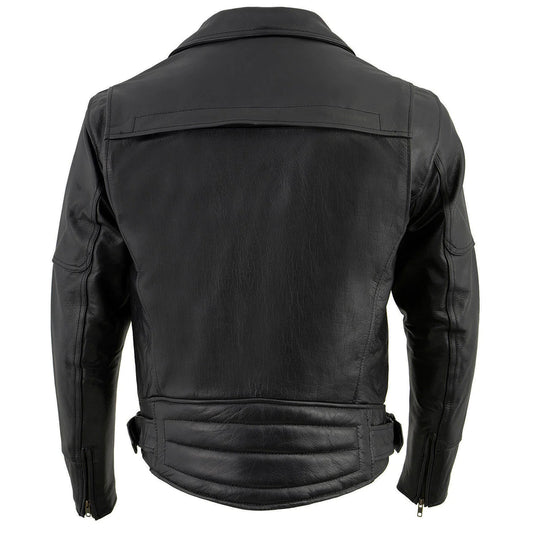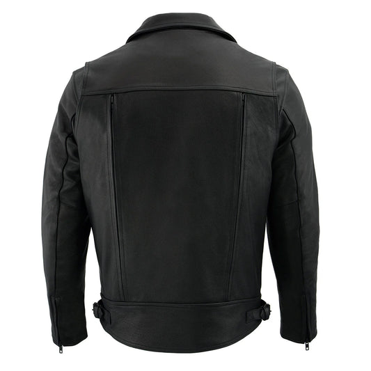 Men's Black 'Pistol Pete' Motorcycle Vented Leather Jacket with Utility Pockets-Tall Sizes