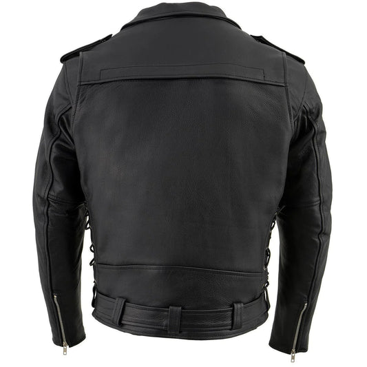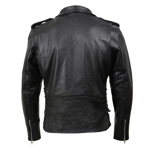 Black Classic Police Motorcycle Jacket for Men Made of Cowhide Leather w/ Side Lacing