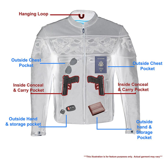 Vance Leathers' Men's Top Performer Motorcycle Leather Jacket with Double Conceal Carry Pockets