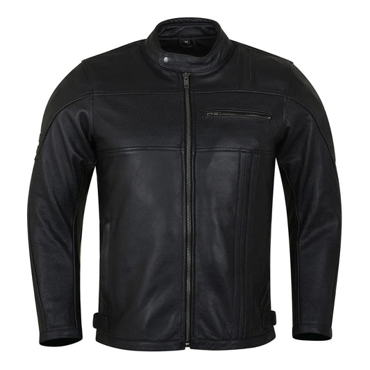 Men's Sporty Crossover Vented Black Motorcycle Leather Scooter Jacket