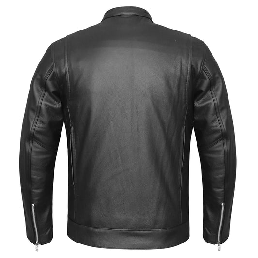 Vance Leathers' Men's Commuter Cafe Racer Motorcycle Leather Jacket with Armor