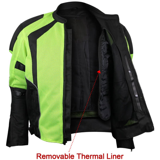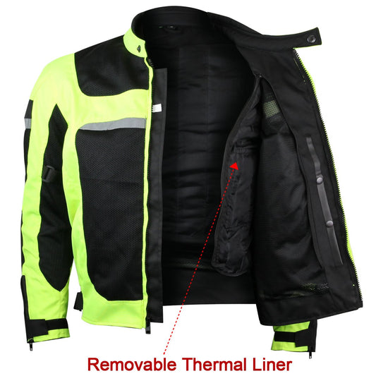 HIGH VISIBILITY MESH MOTORCYCLE JACKET WITH INSULATED LINER AND CE ARMOR