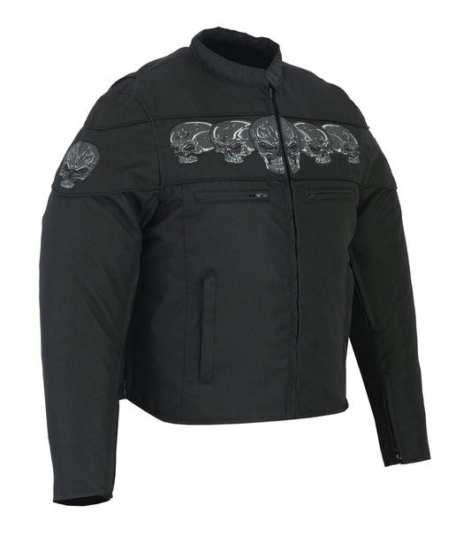 Men's Textile Scooter Style Jacket w/ Reflective Skulls